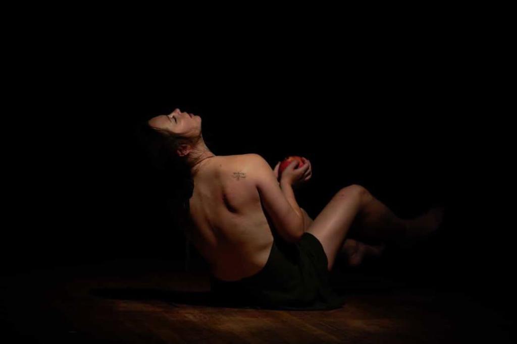 ‘Fruit of My Woman’ is a solo piece based on the short story of the same name by novelist Han Kang (read here). It is a response to the pressures of ‘straight time’ (to get married, to have children, and so on), in which a figure blurs the boundary between human, non-human, and celestial. It evokes strong archetypal images through the symbol of a pomegranate split open.